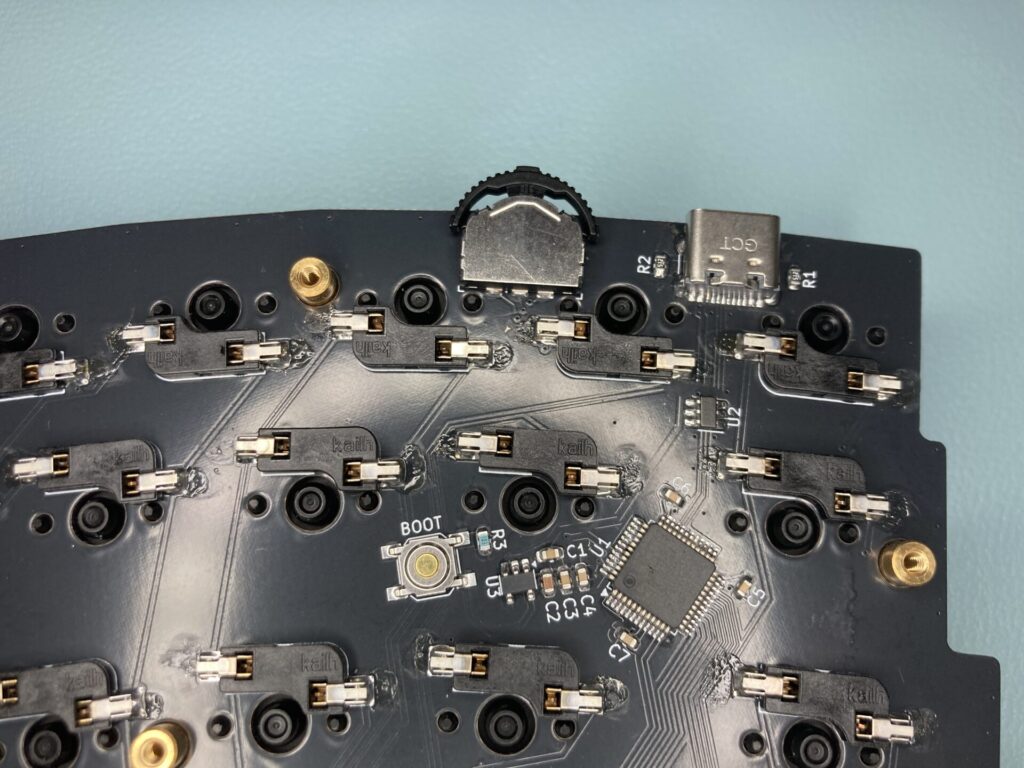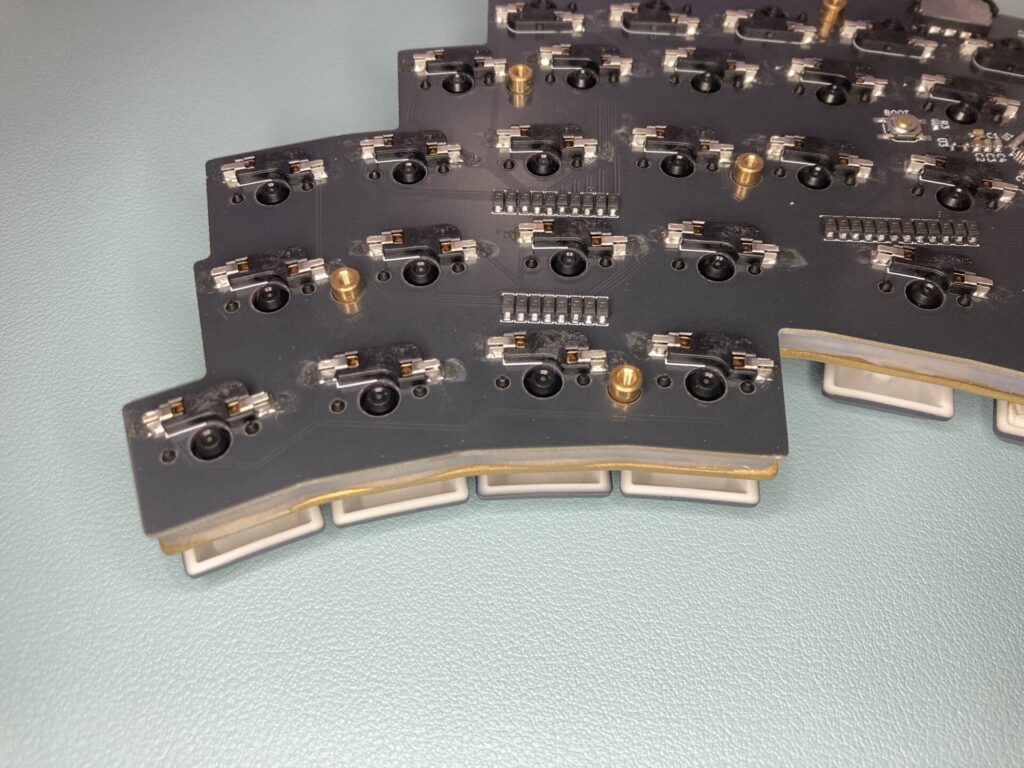 MXともChocともピン配置が異なり、これまた専用のホットスワップソケットを使用する必要がありました。内部構造が異なるので難しいのかもしれないですけど、それでもなんでそもそもMXとソケット互換にしないんでしょうね、、、
