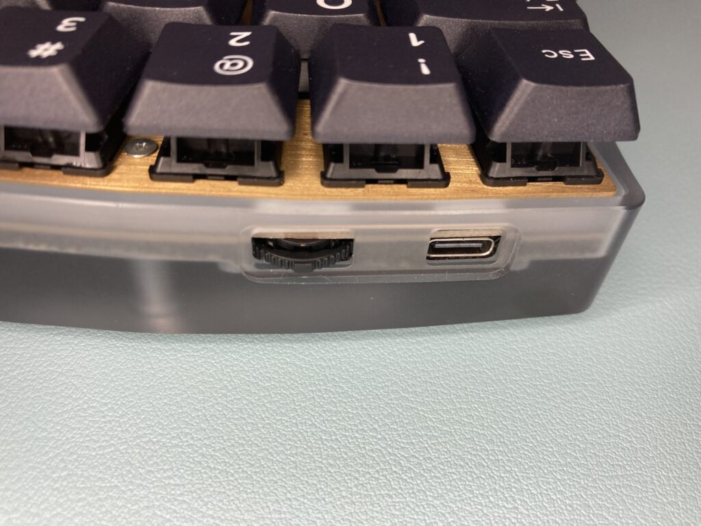 USBはちょっと奥まっています。typeCに対して開口広めですが、wooting位置だけでなくgh60位置にも対応させています。薄くて干渉する際は1mmぐらい持ち上げても大丈夫なようにしています。