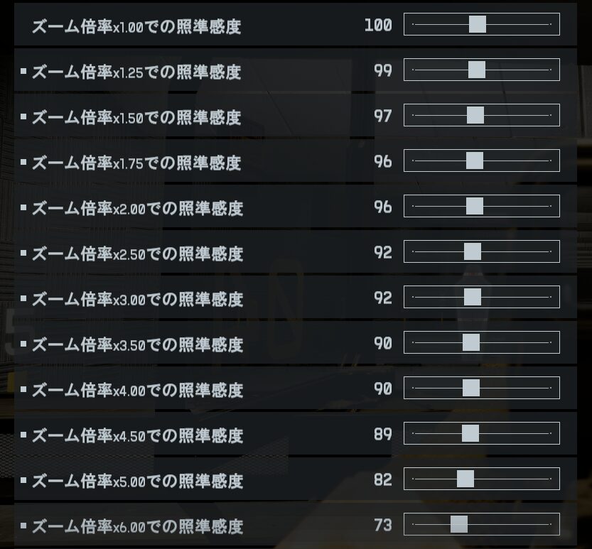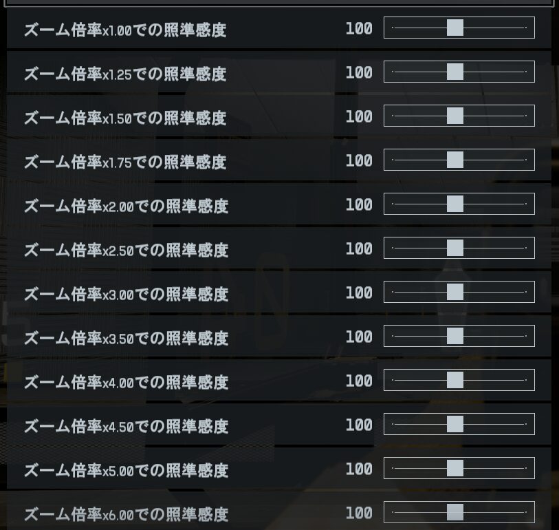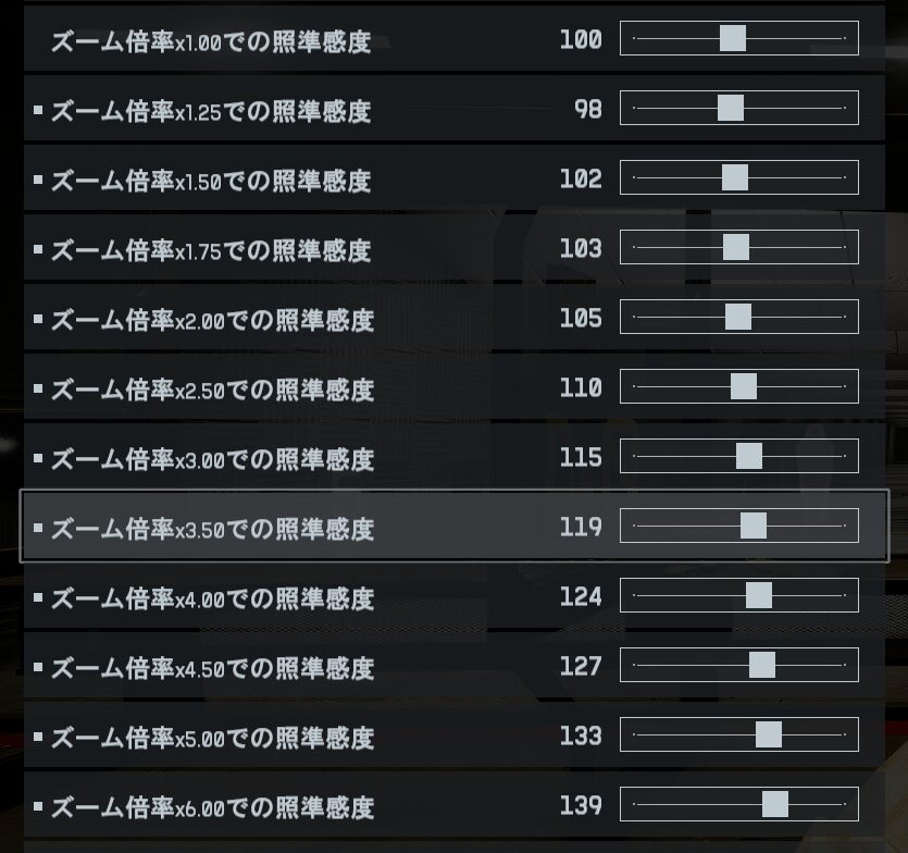 もう少し具体的な話をします。BFに限らず、FPSではこのように各倍率の感度を段階的に下げた調整するような人を見たことがあると思います。