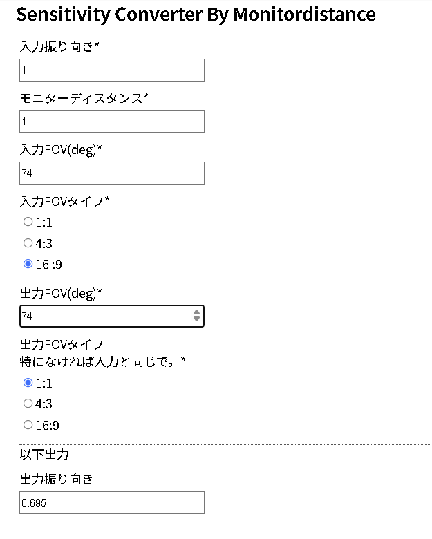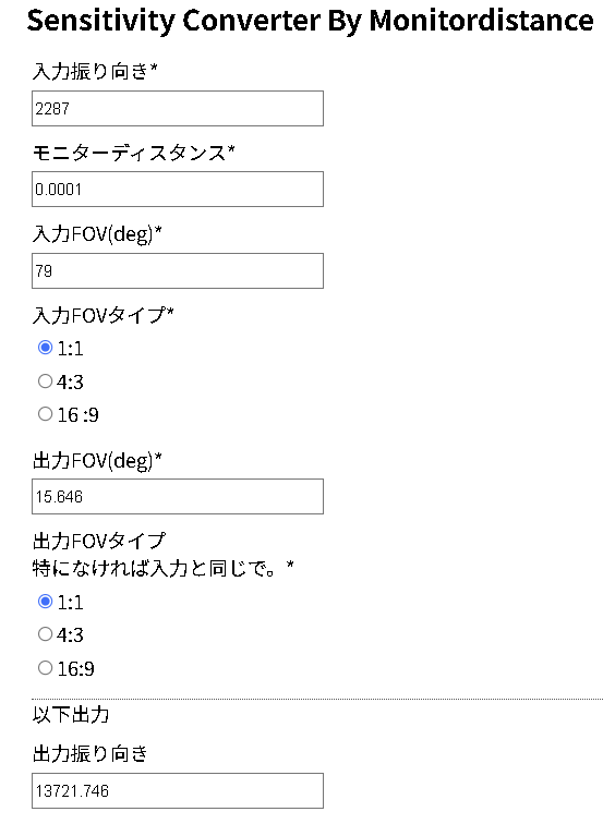 この計算機でモニターディスタンス値があっていれば、測った振り向きと同じものが出てくるはずというわけです。