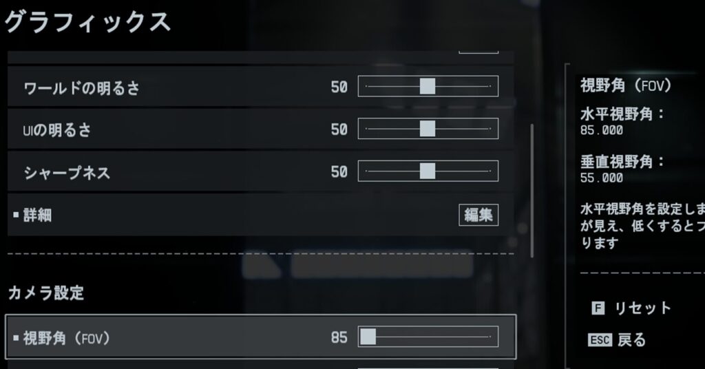 BF6設定画面内でのスライダーでは視野角の小数点は設定できませんから、設定ファイルに直接