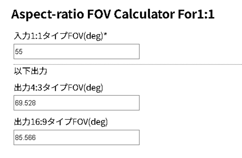しかし視点移動は画面上のようにリニアではない(視野角を高くすると画面内はレンズのように歪んで見えますよね。)ため、実際に計算すると56%では低すぎます。