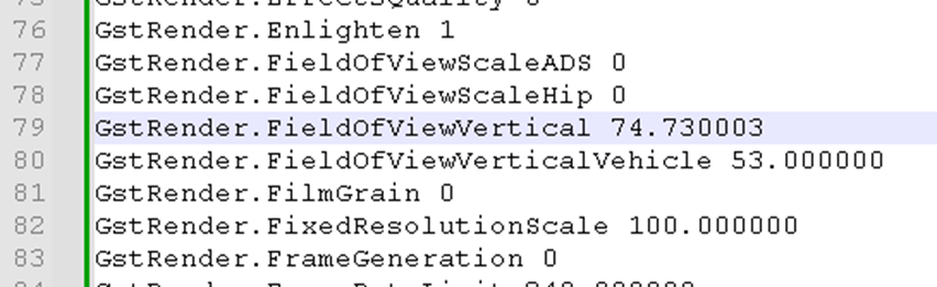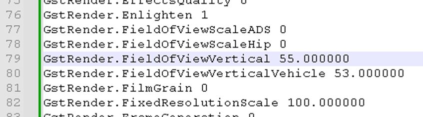 内の「PROFSAVE_profile」ファイル79行目に「GstRender.FieldOfViewVertical」という項目があります。ゲーム内では垂直視野角を基準に設定しているということがわかりますね。