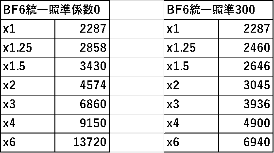 さてBF6はどうでしょうか。今度はBF6の3倍はBFV2.6倍相当というように、逆にBFV倍率よりも低いです!