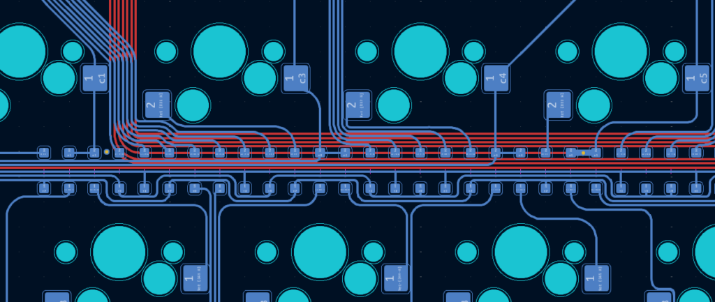 ダイオードを一か所にずらっと並べてみました。これではんだ付けが多少やりやすいかなと考えています。配線自体もこの方が簡単です。また裏面はベタになるのでマイコン周りでGNDを気にせず配置できる利点もあります。