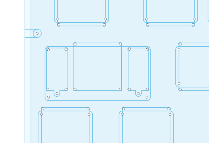 ケースの構成はtopとbotの2pcsのintegratedマウントにします。ケース間は予め基板に設けておいたプレートマウント用の穴で行います。