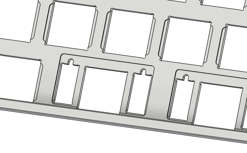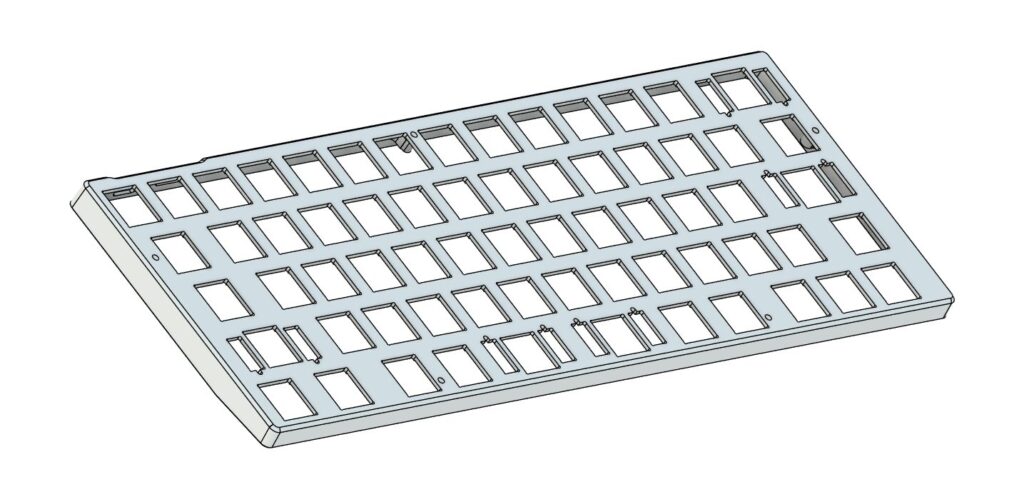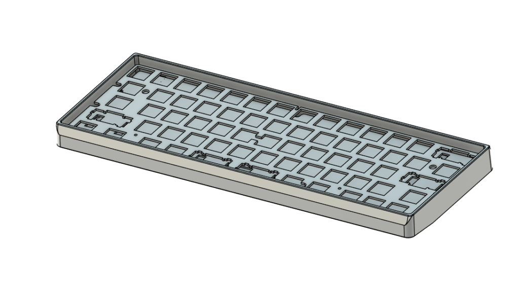 MX用にGH60互換のトレイケースも作成しました。ベゼルは狭いほどいいので左右は最低限の2.5mm、前後はそこまで邪魔にならないので5mmとしました。