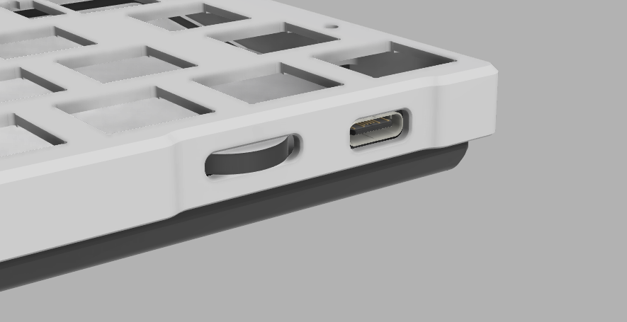 USBはちょっと奥まっています。typeCに対して開口広めですが、wooting位置だけでなくgh60位置にも対応させています。薄くて干渉する際は1mmぐらい持ち上げても大丈夫なようにしています。